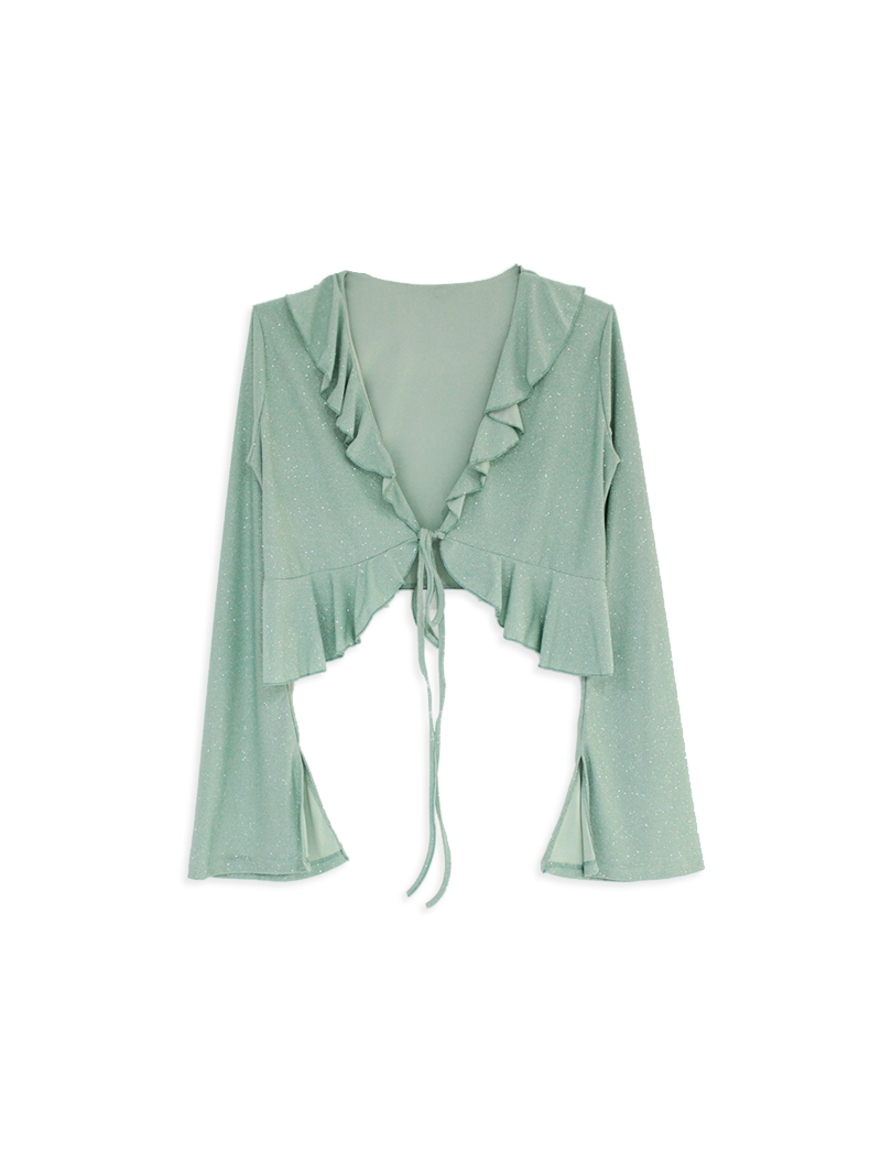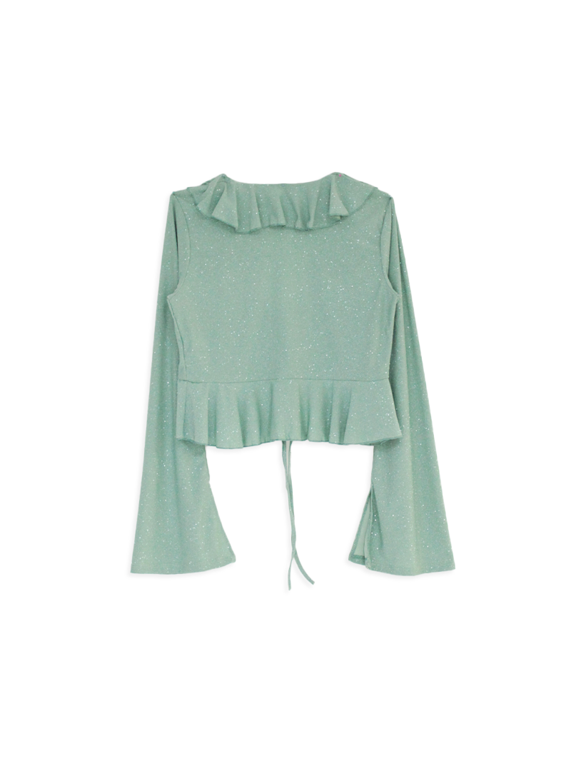 Blusa de Ity Glitter manga larga con volados y tiras para atar en la parte frontal.