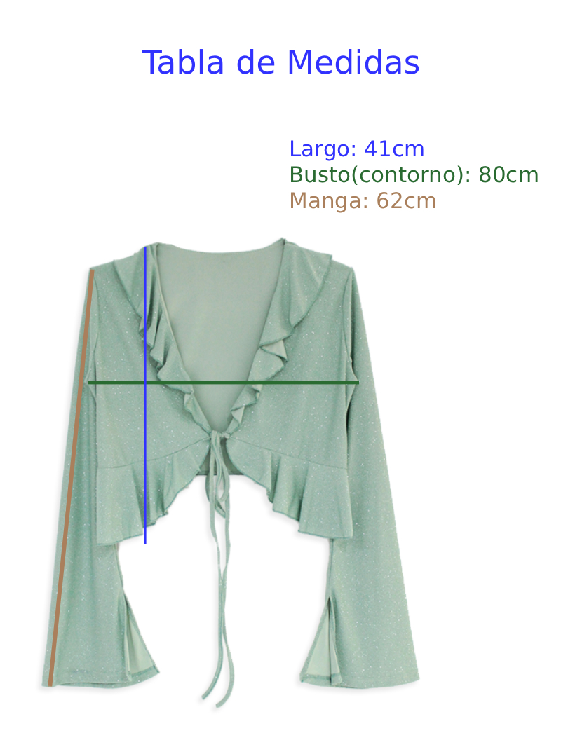 B6214 º Blusa M/Larga Ity Glitter C/Volados