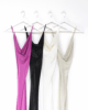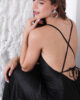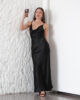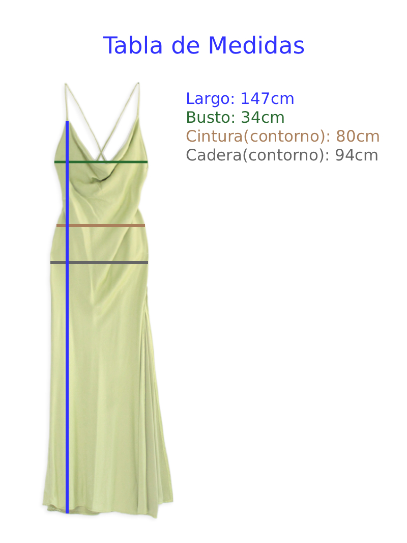 Vestido largo de saten verona con buche y tiras regulables para atar en la espalda.