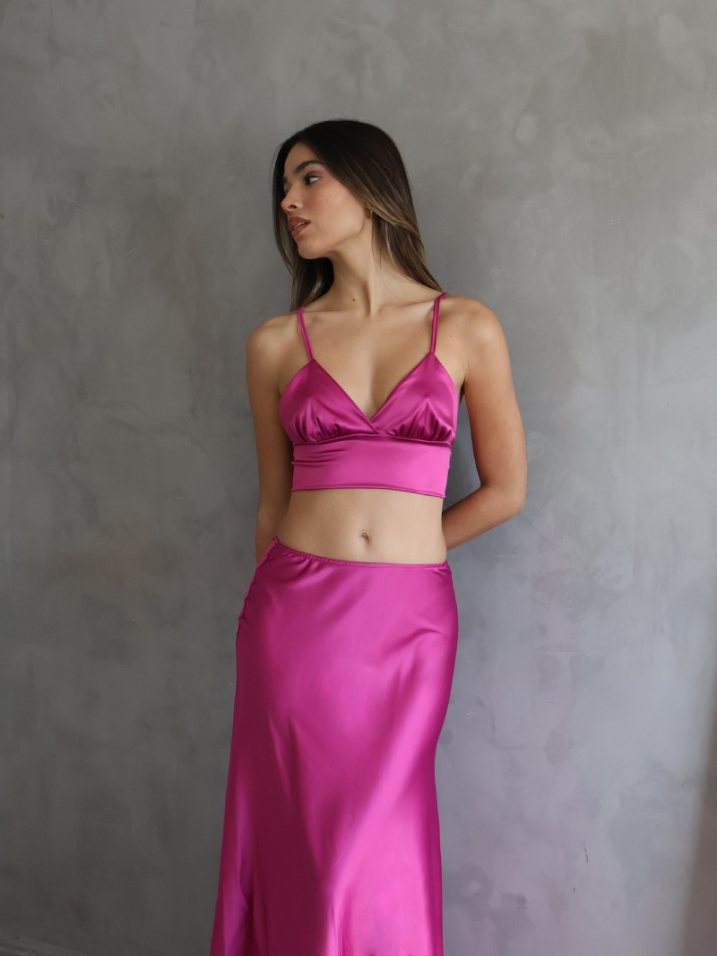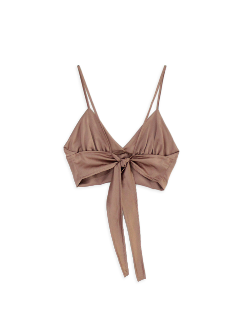 Top de saten napoli con escote en V para atar.