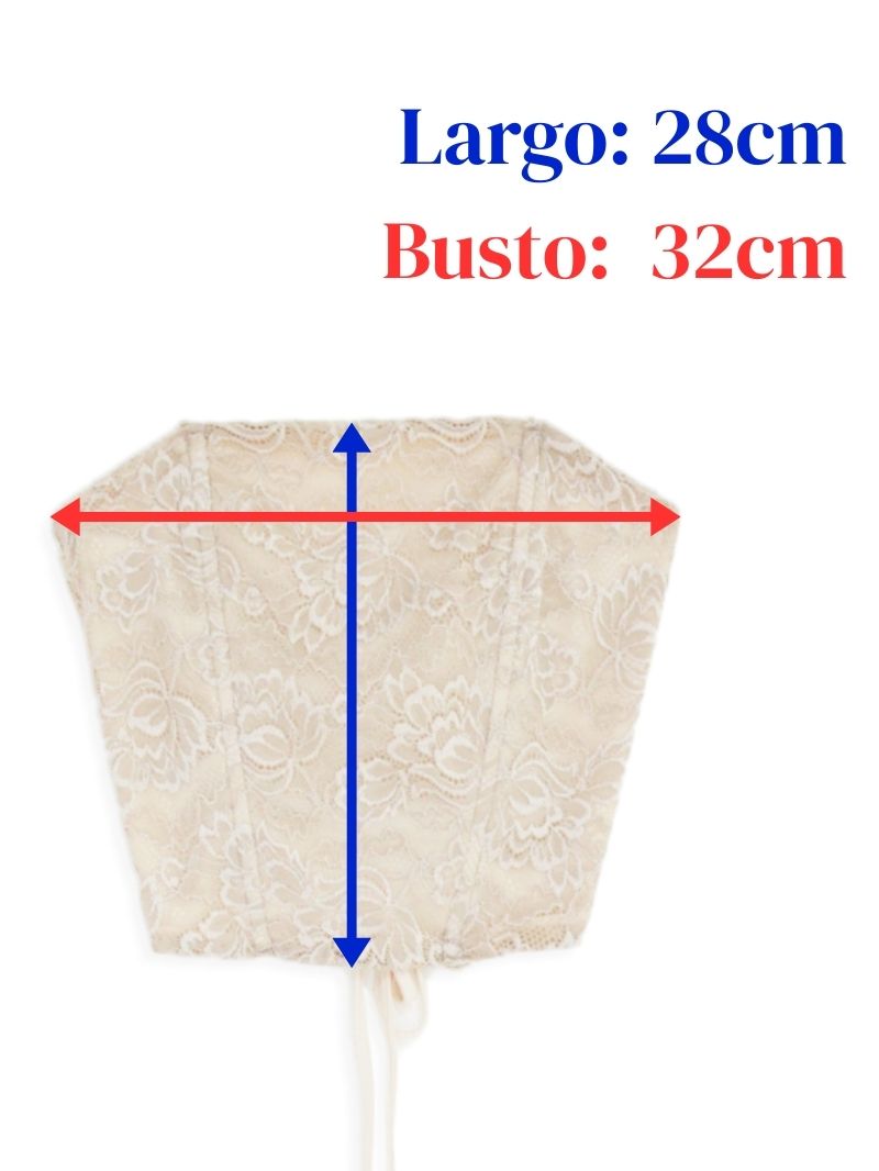 Corset de encaje con ballena y tiras regulables.
