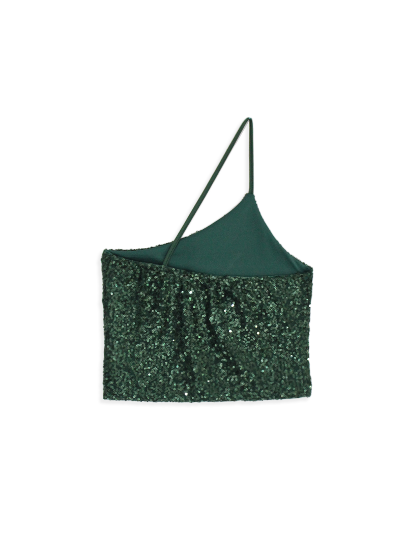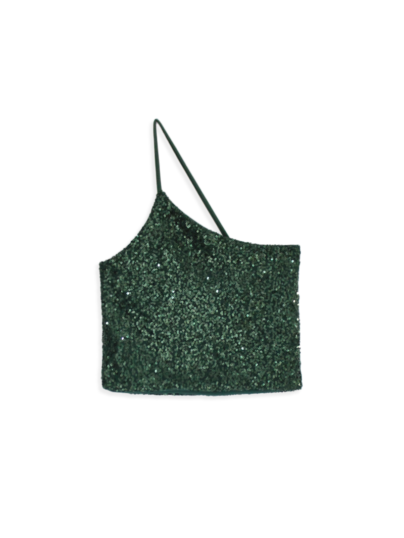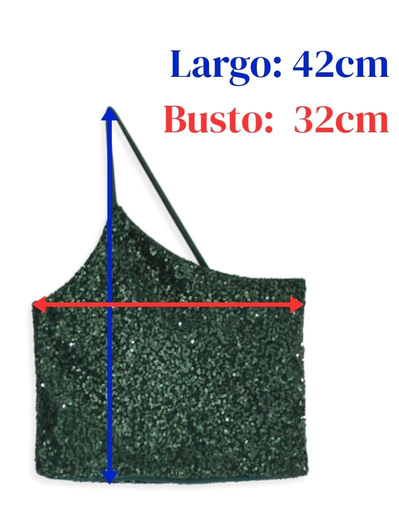 T6264 º Top Lentejuela New York Un Hombro Cruzado