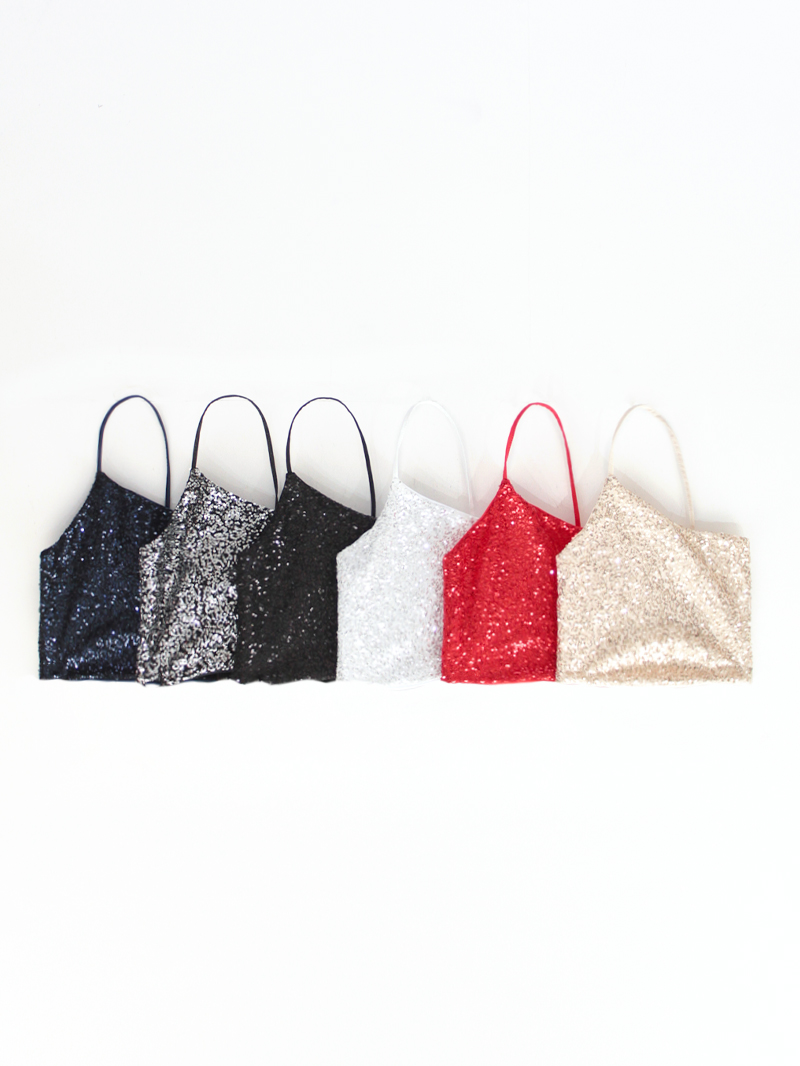 Top de Lentejuela New York con una tira cruzada y elástico.