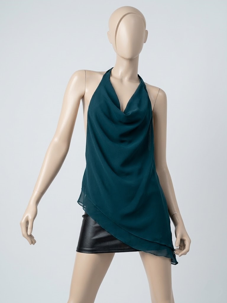 Top cuello halter con lazo para atar caida en pici.
