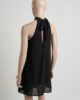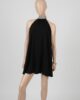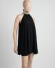 Vestido corto y amplio con strass de brillo. El cuello tiene tira para atar y la espalda es semi descubierta.