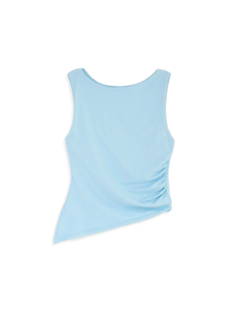 Musculosa Modal de cuello redondo con frunce y pico.